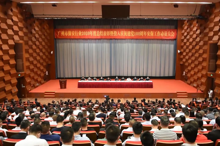 2021年3月16日下午,廣州市保安協會聯合市見義勇為基金會在白云國際會議中心召開了保安行業2020年度總結表彰暨投入慶祝建黨100周年安保工作動員大會。廣州市公安局政治部副主任、市保安協會會長楊勇,廣東省公安廳治安管理局基層指導處四級高級警長、省保安協會副秘書長關揚榮,市公安局治安管理支隊政委、市保安協會秘書長羅興強,市見義勇為基金會理事長馬國俊,市公安局治安管理支隊副支隊長于海澎、內部安全保衛支隊副支隊長邱定國、戶政管理支隊副支隊長和嘉強,市保安協會副會長趙洪濤、監事長王新, 市公安局治安管理支隊保安管理科科長林永國及各區公安分局保安監管部門負責人等領導出席會議。全市保安從業單位、優秀保安培訓機構代表,優秀保安培訓師、羊城最美保安員共計400余人參加了會議。會議由市保安協會副秘書長黃曉峰主持。