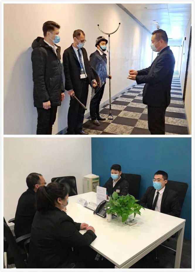演練開始前,培訓教官集合隊員就演練流程、職責分工及相關注意事項進行了再次確認。本次演練模擬某男子拒不配合防疫檢查,被值班保安員阻攔后情緒激動且伴有攻擊性舉動,保安員在勸阻與警告無效后,隨即發出增援信號。增援隊員快速趕到現場,在確保銀行工作人員及群眾安全的情況下,運用防暴棍、盾牌、鋼叉等器械將該男子逼至角落并制服,成功避免了暴力傷害事件的發生。